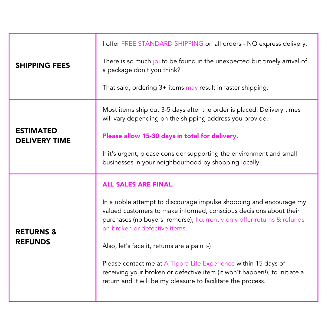 These packages are worth the wait, for the jöi they bring far outweigh the speed with which they arrive.